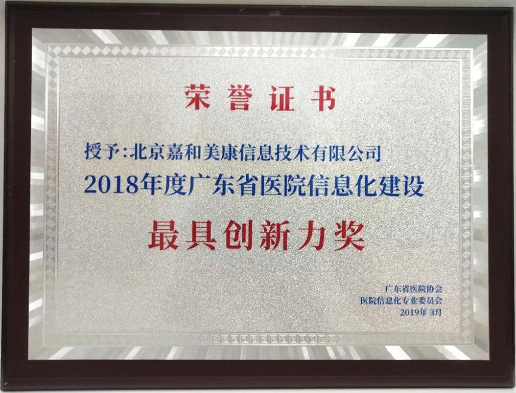 2018年度廣東省醫(yī)院信息化建設(shè)最具創(chuàng)新力獎