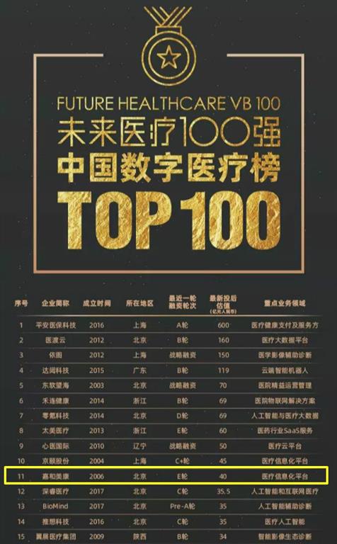 未來(lái)醫(yī)療100強(qiáng)榜單發(fā)布,嘉和美康榜上有名