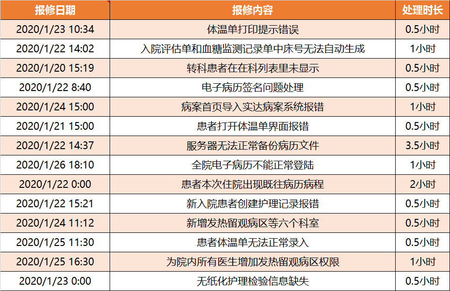 疫情期間嘉和美康用戶部分報(bào)修記錄