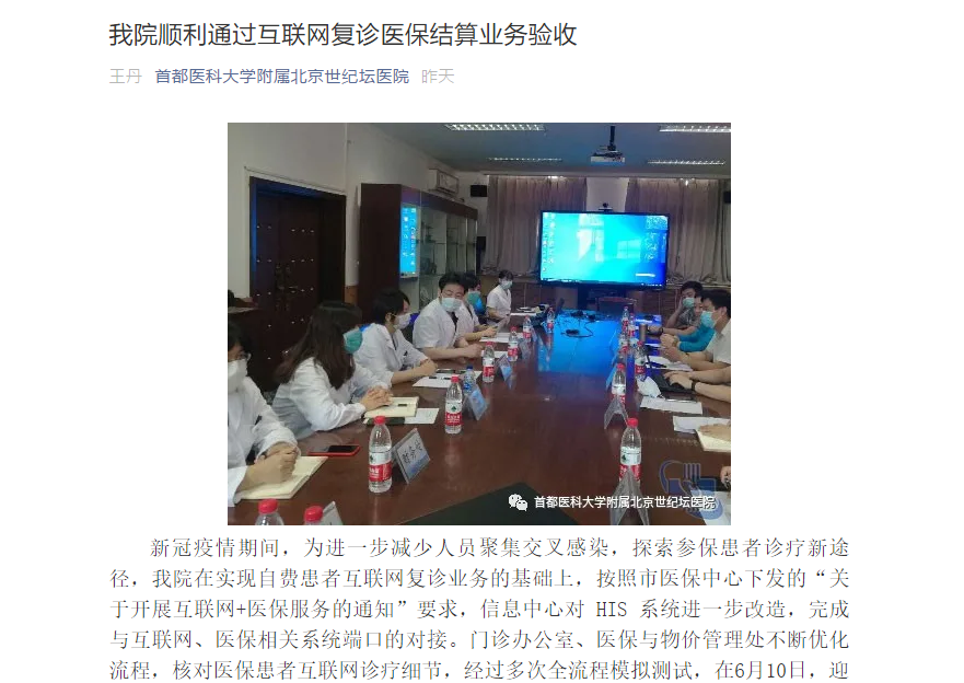 首都醫(yī)科大學(xué)附屬北京世紀(jì)壇醫(yī)院順利通過互聯(lián)網(wǎng)復(fù)診醫(yī)保結(jié)算業(yè)務(wù)驗(yàn)收