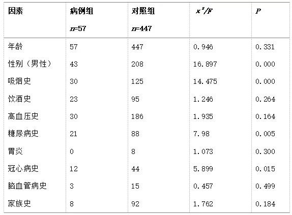 表1 病例組與對照組單因素比較分析結(jié)果