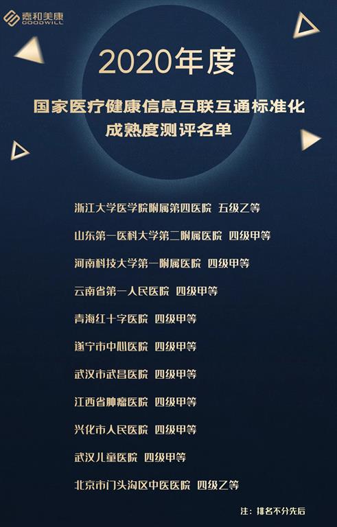 日前,國(guó)家衛(wèi)生健康委統(tǒng)計(jì)信息中心對(duì)2020度國(guó)家醫(yī)療健康信息互聯(lián)互通標(biāo)準(zhǔn)化成熟度測(cè)評(píng)結(jié)果進(jìn)行了公示,此次涉及全國(guó)20個(gè)區(qū)域和148家醫(yī)院。其中,在嘉和美康的產(chǎn)品及技術(shù)的支持下,共有11家醫(yī)院參評(píng)并順利通過測(cè)評(píng)。