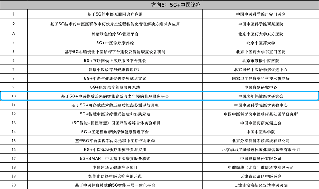 根據(jù)《工業(yè)和信息化部辦公廳國(guó)家衛(wèi)生健康委員會(huì)辦公廳關(guān)于組織開展5G+醫(yī)療健康應(yīng)用試點(diǎn)項(xiàng)目申報(bào)工作的通知》有關(guān)要求,按照“寬進(jìn)嚴(yán)出,優(yōu)中選優(yōu)”的整體工作思路,經(jīng)項(xiàng)目申報(bào)、專家初審、復(fù)審等程序,評(píng)審結(jié)果于2021年8月17日至8月23日公示。其中,由嘉和美康與中國(guó)老年保健醫(yī)學(xué)研究會(huì)、北京中醫(yī)藥大學(xué)、北京郵電大學(xué)、北京醫(yī)院、中國(guó)移動(dòng)通信集團(tuán)北京有限公司、杭州古道九和醫(yī)療科技有限公司聯(lián)合申報(bào)的課題《基于5G+中醫(yī)體質(zhì)治未病智能診斷與老年慢病管理服務(wù)平臺(tái)》,成功入選。