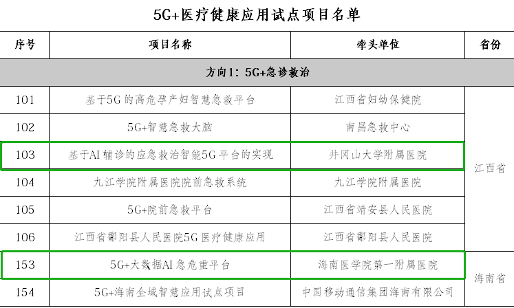 近日,中華人民共和國工業(yè)和信息化部、中華人民共和國衛(wèi)生健康委員會聯(lián)合公示了“5G+醫(yī)療健康應(yīng)用試點項目”名單。其中,嘉和美康根據(jù)“5G+急診救治”方向參與申報的 “基于AI 輔診的應(yīng)急救治智能5G平臺的實現(xiàn)”和“5G+大數(shù)據(jù)AI急危重平臺” 兩大項目均成功入選。