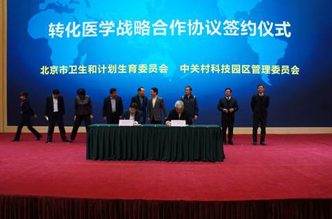 12月26日由北京市衛(wèi)計(jì)委、中關(guān)村管委會(huì)共同組織的“中關(guān)村促進(jìn)健康服務(wù)業(yè)發(fā)展醫(yī)企創(chuàng)新合作大會(huì)”在中關(guān)村示范區(qū)展示中心召開,國家衛(wèi)計(jì)委法制司司長張春生、市衛(wèi)計(jì)委主任方來英、中關(guān)村管委會(huì)主任郭洪等有關(guān)領(lǐng)導(dǎo),以及首都醫(yī)療衛(wèi)生機(jī)構(gòu)、中關(guān)村企業(yè)、產(chǎn)業(yè)聯(lián)盟、投資機(jī)構(gòu)負(fù)責(zé)同志200余人出席會(huì)議。會(huì)上北京市衛(wèi)計(jì)委與中關(guān)村管委會(huì)共同簽署戰(zhàn)略合作協(xié)議,雙方將支持在京醫(yī)療衛(wèi)生機(jī)構(gòu)與中關(guān)村健康服務(wù)領(lǐng)軍企業(yè)共同搭建首都轉(zhuǎn)化醫(yī)學(xué)研究平臺(tái),期望以臨床需求為中心,打破傳統(tǒng)的基礎(chǔ)研究與臨床實(shí)踐的障礙分隔,加速科研成果“從實(shí)驗(yàn)臺(tái)到病床旁”,促進(jìn)健康服務(wù)業(yè)發(fā)展。