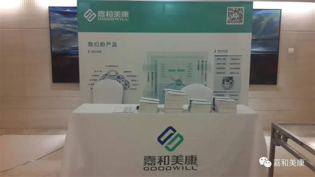 嘉和美康展區(qū)現(xiàn)場公司展臺前吸引了眾多參會者圍觀、交流