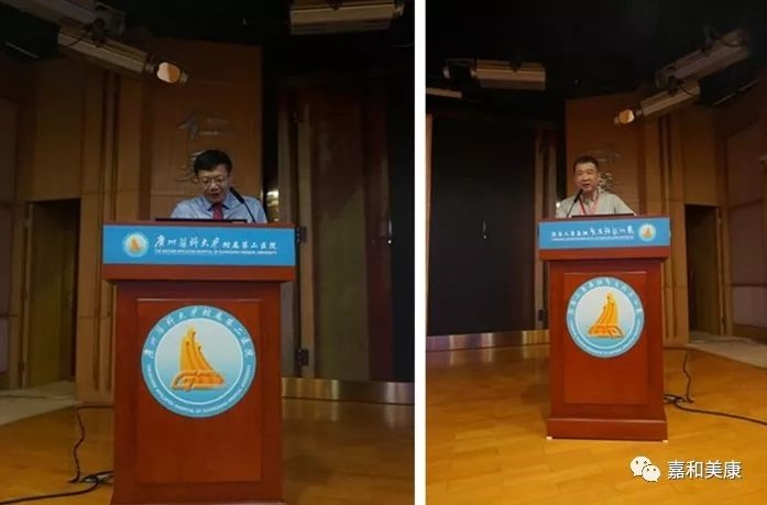 12日上午,廣州醫(yī)科大學(xué)附屬第二醫(yī)院院長劉世明(左)、廣東省醫(yī)院協(xié)會(huì)會(huì)長黃力(右)做了精彩的開幕致辭。