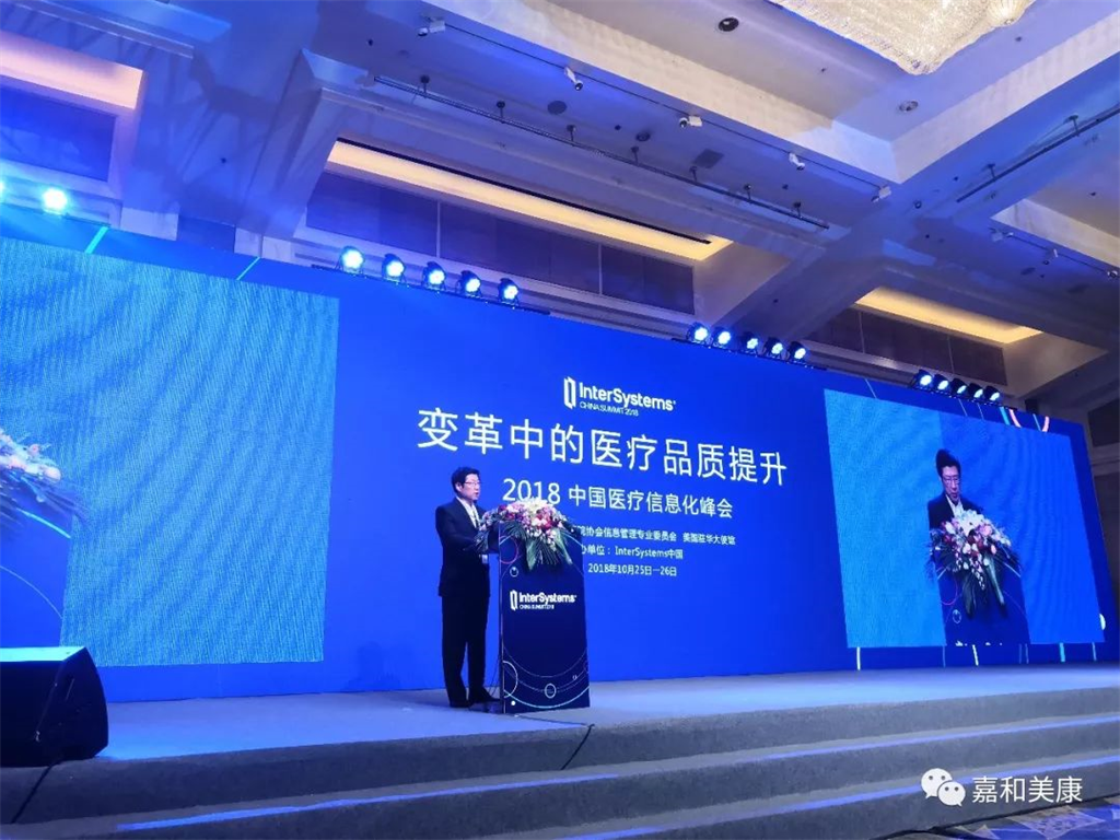 10月25日,由嘉和美康重要合作伙伴正值成立40周年的全球醫(yī)療信息技術(shù)領(lǐng)域領(lǐng)導(dǎo)者InterSystems主辦,中國(guó)醫(yī)院協(xié)會(huì)信息管理專業(yè)委員會(huì)與美國(guó)駐華大使館支持的“2018中國(guó)醫(yī)療信息化峰會(huì)”在北京嘉里大酒店舉行了為期兩天的峰會(huì)。本屆峰會(huì)以“變革中的醫(yī)療品質(zhì)提升”為主題,邀請(qǐng)了20多位醫(yī)療信息化領(lǐng)域的優(yōu)秀專家就信息化變革在醫(yī)療方面的影響展開了討論與分享,本次會(huì)議參會(huì)人員超過300人,規(guī)模盛大,引起了業(yè)內(nèi)的熱烈反響。