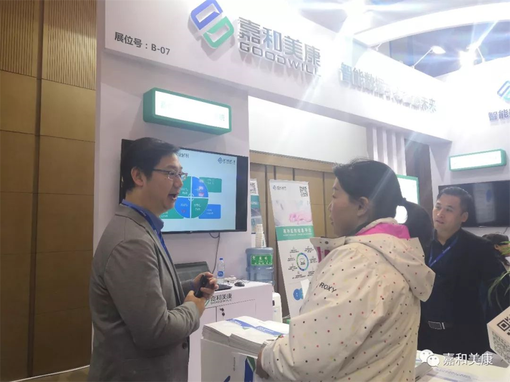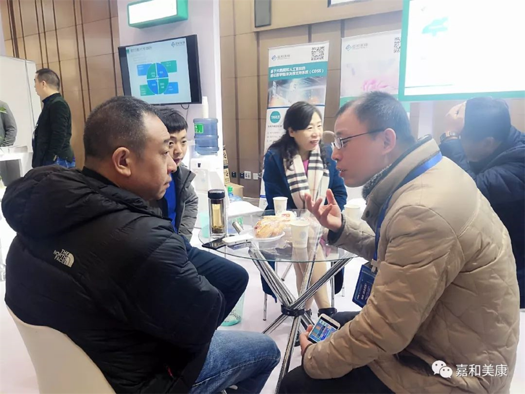 與會(huì)人員在嘉和美康展臺(tái)交流咨詢