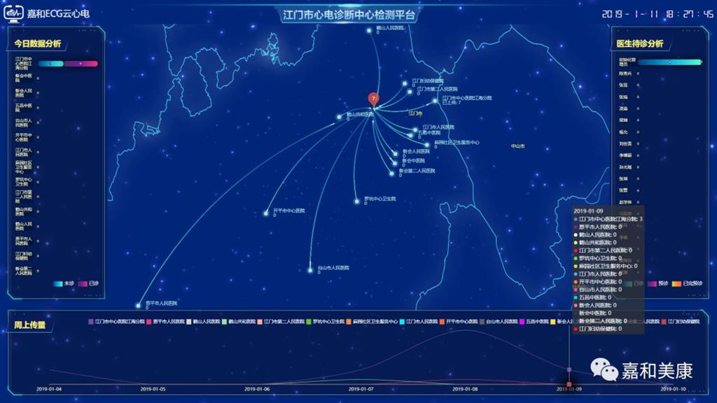 2019年1月15日,由嘉和美康提供重要技術(shù)支持的江門市中心醫(yī)院遠(yuǎn)程心電診斷中心聯(lián)網(wǎng)醫(yī)院在江門市中心醫(yī)院江海分院舉行了揭牌儀式,江海分院是江門市中心醫(yī)院遠(yuǎn)程心電診斷中心的首家聯(lián)網(wǎng)醫(yī)院,它建立了覆蓋全市的遠(yuǎn)程心電診斷中心,到醫(yī)院就診的患者可享受到三甲醫(yī)院的心電遠(yuǎn)程會(huì)診及更多優(yōu)質(zhì)醫(yī)療資源的服務(wù)。