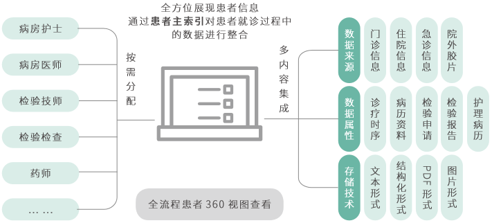 患者統(tǒng)一視圖是基于數(shù)據(jù)中心的臨床集成類典型應(yīng)用,將患者全生命周期就診信息按照時(shí)間序列進(jìn)行分析和展現(xiàn),方便醫(yī)生對(duì)患者特征和既往病史進(jìn)行全盤了解,有效提高了臨床診療的效率和效果。