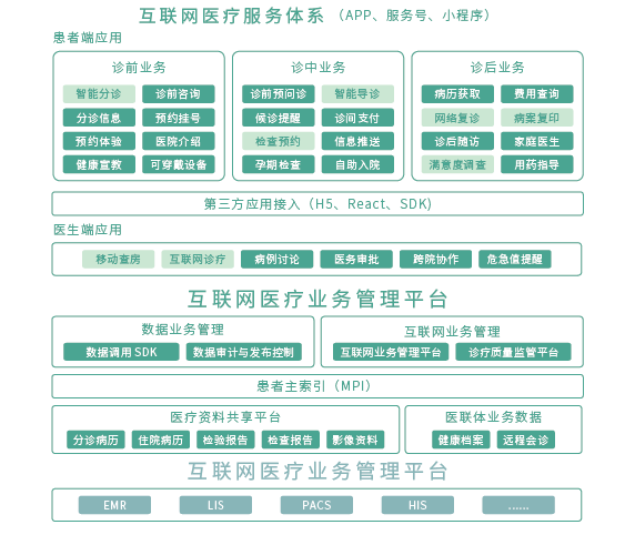 互聯網醫(yī)院系統提供了以病歷為基礎,以患者為中心,醫(yī)師、藥師、護士共管的互聯網醫(yī)療服務體系,提供病歷查閱、診療預約、視頻問診、處方開具、檢查檢驗開具、藥師審方、醫(yī)保支付、處方外流、藥品配送、檢查預約、護理咨詢、上門護理、藥師咨詢等一站式的互聯網診療全流程閉環(huán)服務,實現“互聯網+醫(yī)療”、“互聯網+護理”,充分拓展醫(yī)療機構服務的邊界,滿足患者對慢病復診、居家護理、合理用藥等多方面的醫(yī)療需求,提升患者就醫(yī)體驗。